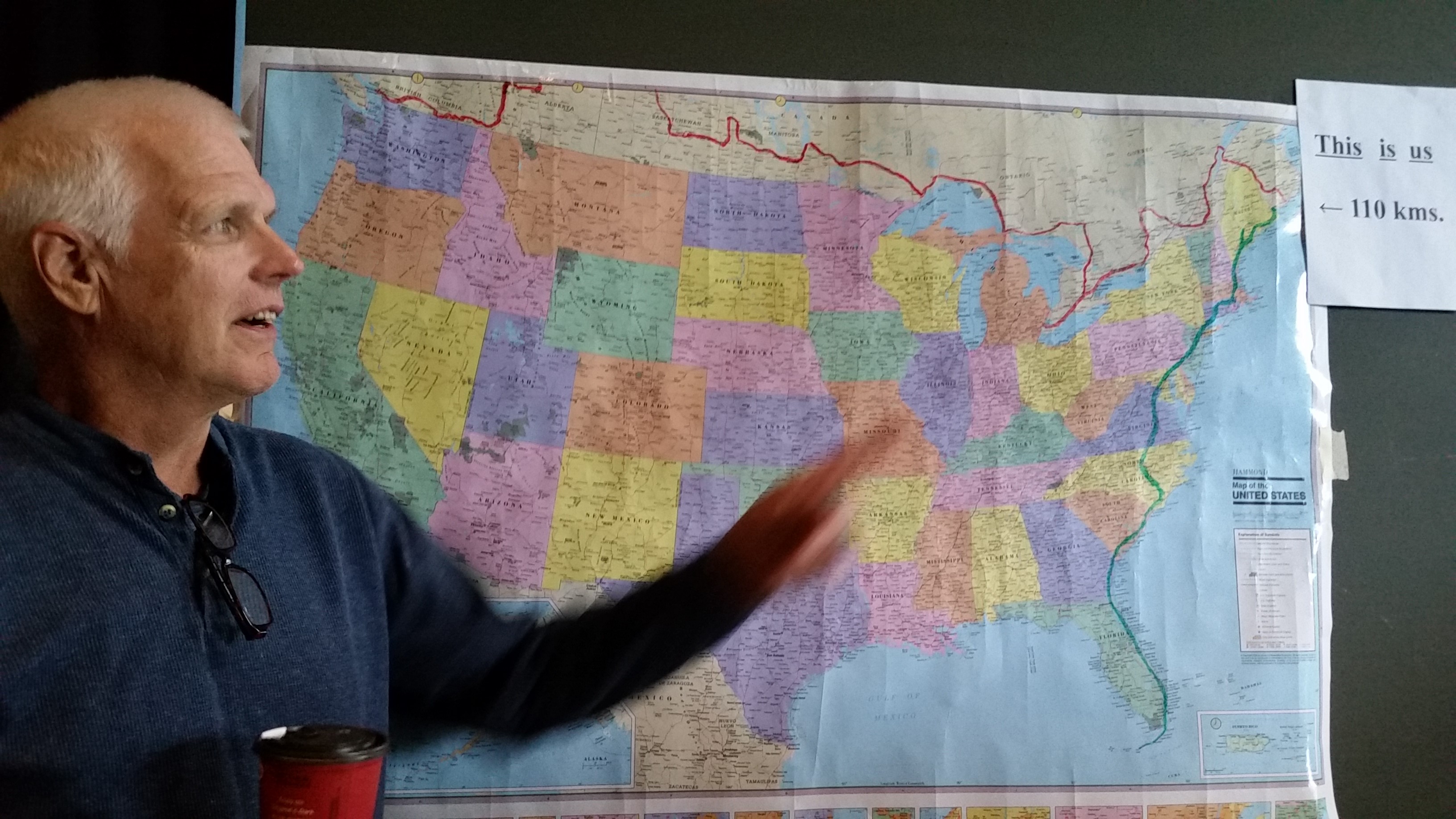 This time, we’ve already heard about the vision to close the 110-kilometer (66-mile) gap in Canada between the East Coast Greenway and the Trans-Canada Trail, which will be completed next year to mark the Canadian sesquicentennial. That trail — a mix of road, trail and even water — stretches from the Pacific to the Atlantic and will be 24,000 kilometers (nearly 15,000 miles) long — the longest trail in the world. But when it crosses the province of New Brunswick, it’s well north of St. Stephen, the town opposite Calais. So that’s got to change.
