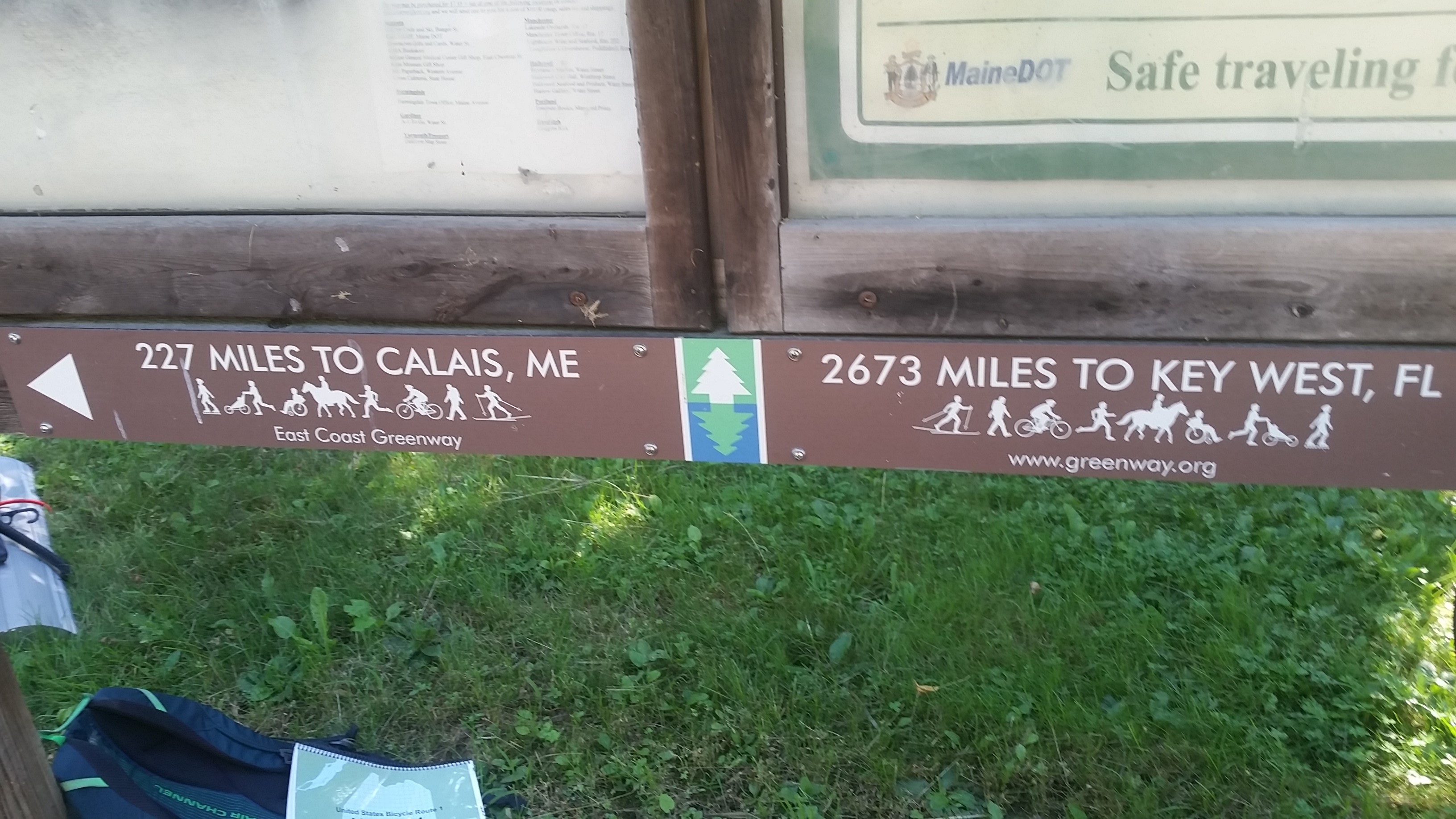 Before we took off on the trail, we met with Maine DOT to thank them for their support of the East Coast Greenway and for the wayfinding signage we’ve used for much of our trip. (Once again, the route essentially overlaps with U.S. Bicycle Route 1.) Watch the local TV’s station report here and read the short AP story that somehow is illustrated with a photo from my blog.
