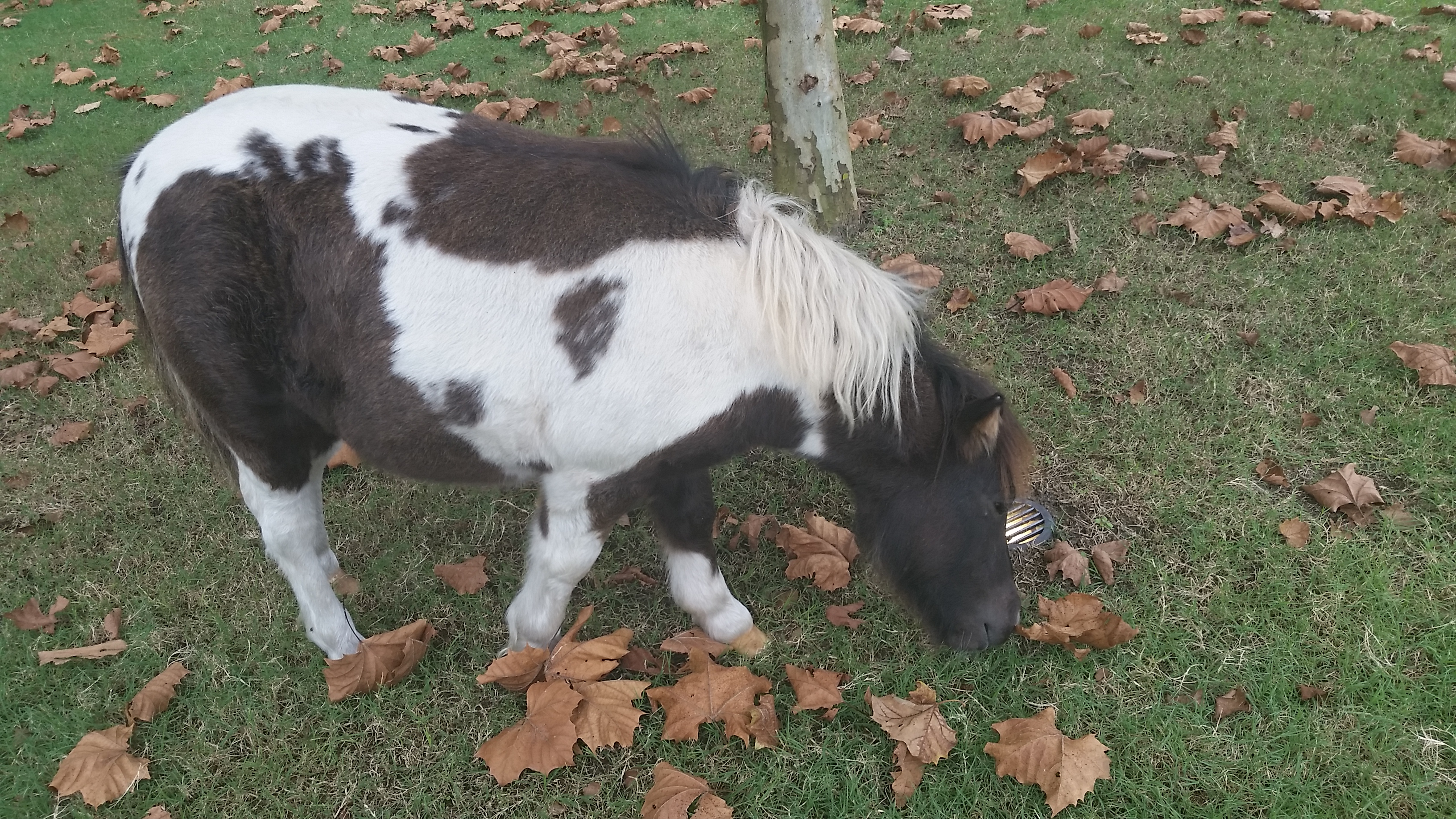 This miniature pony learned as a baby how to duck under the fence; he still roams free.