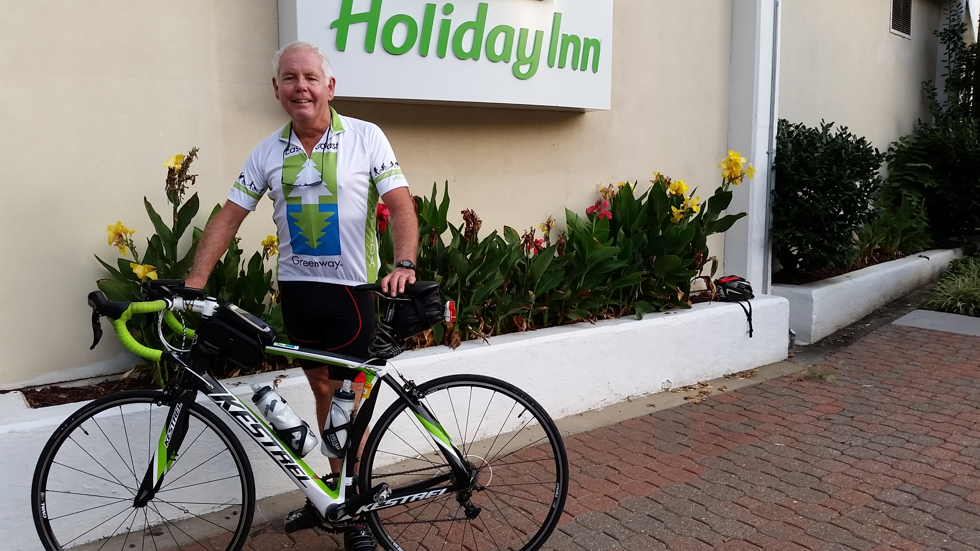 Chris’s bike matches the East Coast Greenway colors! (OK, also, Holiday Inn’s)