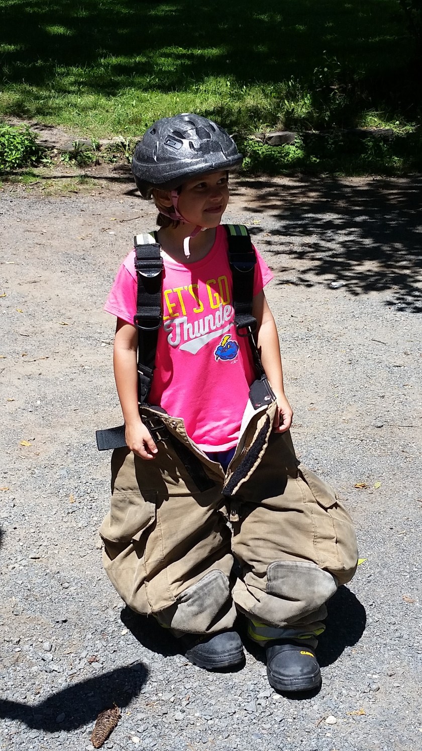But on our second trip back, when we were only four and we did find the elusive marker, they let the lone child step into a firefighter’s boots and wear the attached pants!