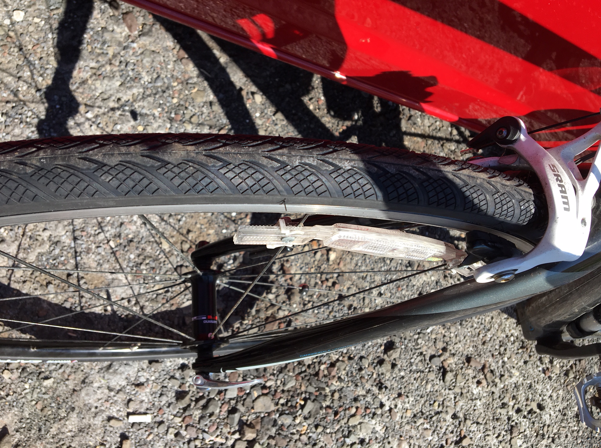 This is my new bag, packed with almost as much as I’ll take on the road, light packer that I am, or am forced to be:And new tires:This is Clive’s set-up (he’ll carry the bulkier stuff):