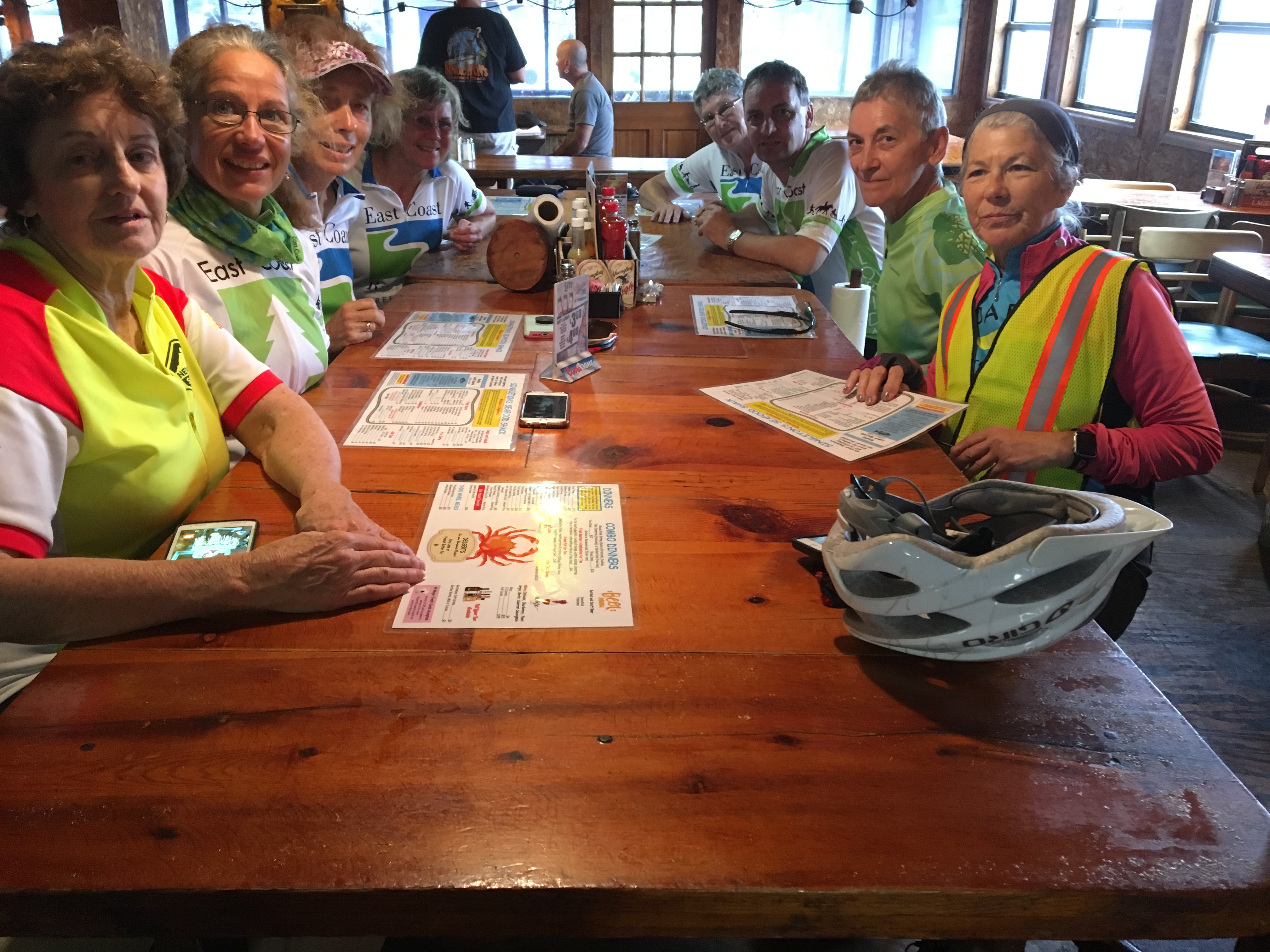 Eventually we made it to our second ferry of the day, getting us to Mayport and our choice of seafood restaurants. My group opted for the “shack” (actually bigger than that) that had been featured on “Diners, Drive-Ins and Dives” and where the default cooking technique appeared to be fried. No matter; we still had 45 miles to bike, and we needed the fuel. (Others went perhaps a minute down the road to another, more refined seafood restaurant that perhaps was a better choice.)