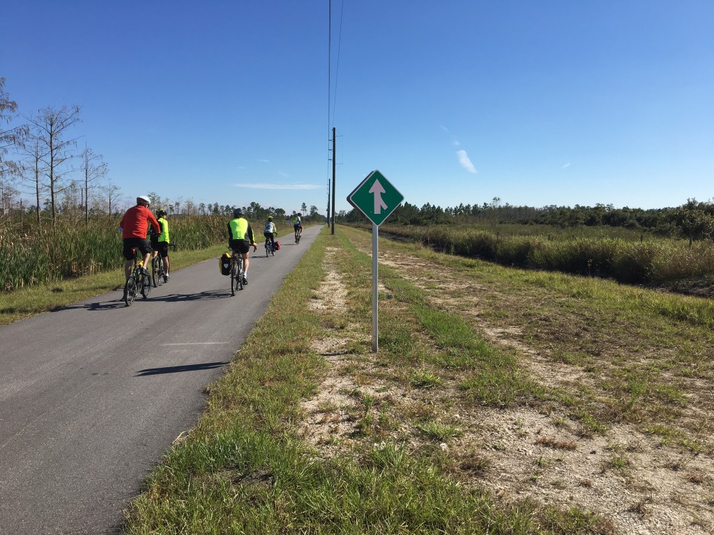 This is the last full day of the 2018 edition of the East Coast Greenway’s annual Week-A-Year fundraising ride, and we spent much of it pedaling on quiet roads or trails— including 34 straight miles on the East Central Rail Trail, part of the Coast-to-Coast Connector that will stretch from Titusville on the Atlantic side of Florida to Tampa-St. Pete on the Gulf of Mexico side. (It’s 80% complete.)