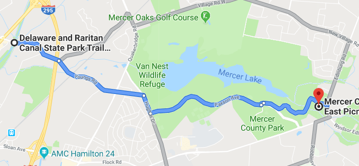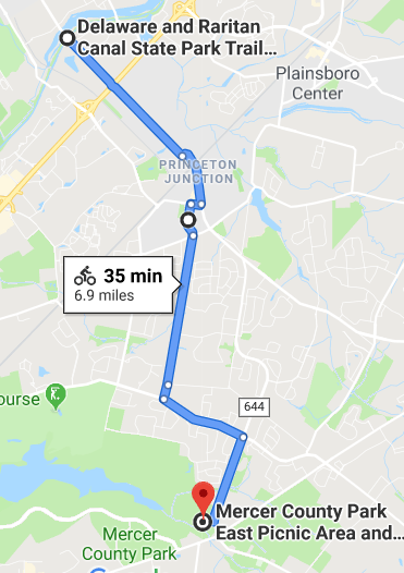 The spots are at the East entrance of Mercer County Park — so about 7 miles from the D&R Canal/East Coast Greenway and Washington Road for southbound riders, and 5 miles from the D&R Canal/East Coast Greenway and Bakers Basin Road for northbound riders.