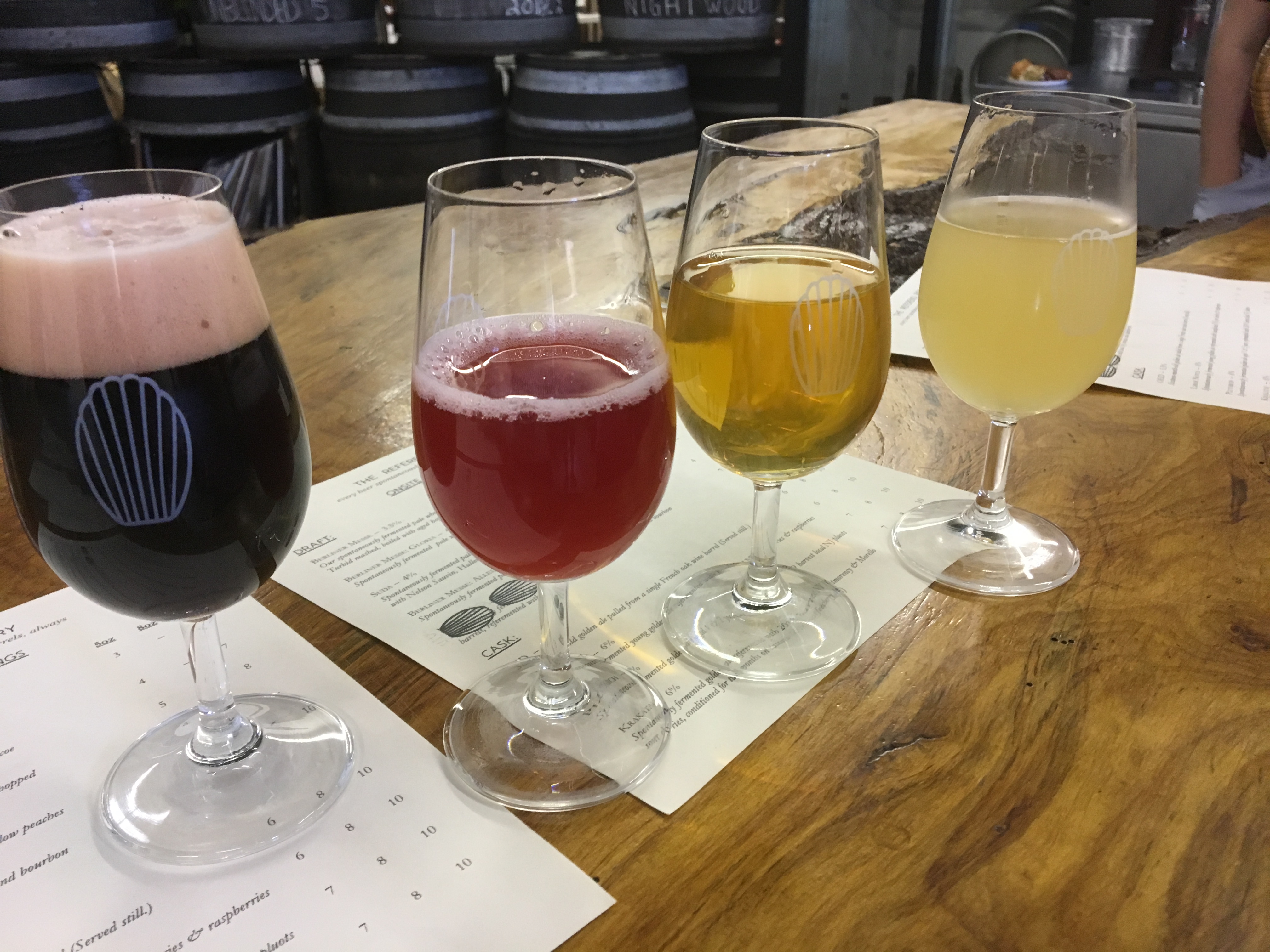 As for the others, one was a golden ale fermented in an oak barrel, and pluots were mixed into another. There’s one with peaches that I’d try next time,