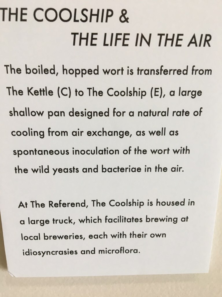 You see, the Referend Bier Blendery in Pennington (or perhaps it’s really Hopewell Township) believes in using the bacteria in the air for spontaneous fermentation. I’m not going to claim I understood everything about this approach, which goes back to the ancients and has at its core “as little interference as possible” in the process. But even I know that using a truck parked outside to house “The Coolship” is out of the ordinary.