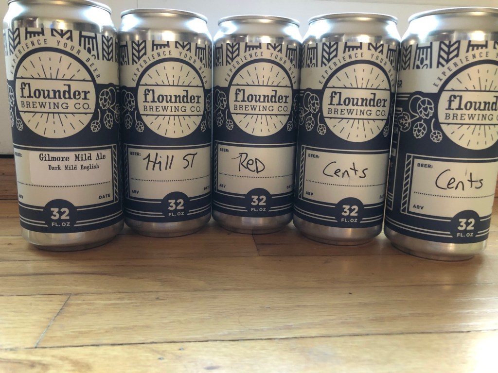 I’d been getting emails most of the week from Flounder Brewing, that nano brewery we checked out last fall as part of my “weird beer” rides. I couldn’t tell if they were still open and selling crowlers (32-ounce cans), but we figured it was as good a destination as any. 17 miles each way, a mix of trail and road.