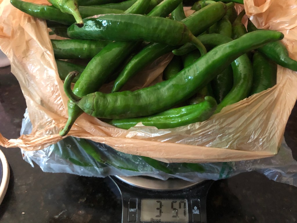 To be honest, it looked like way too much, even if we are eating more vegetables these days. Could we roast them, as if they were Hatch chilies? And then freeze them? Freeze them fresh? How spicy are they? (Medium-hot, it turns out.) Perhaps a small bag?