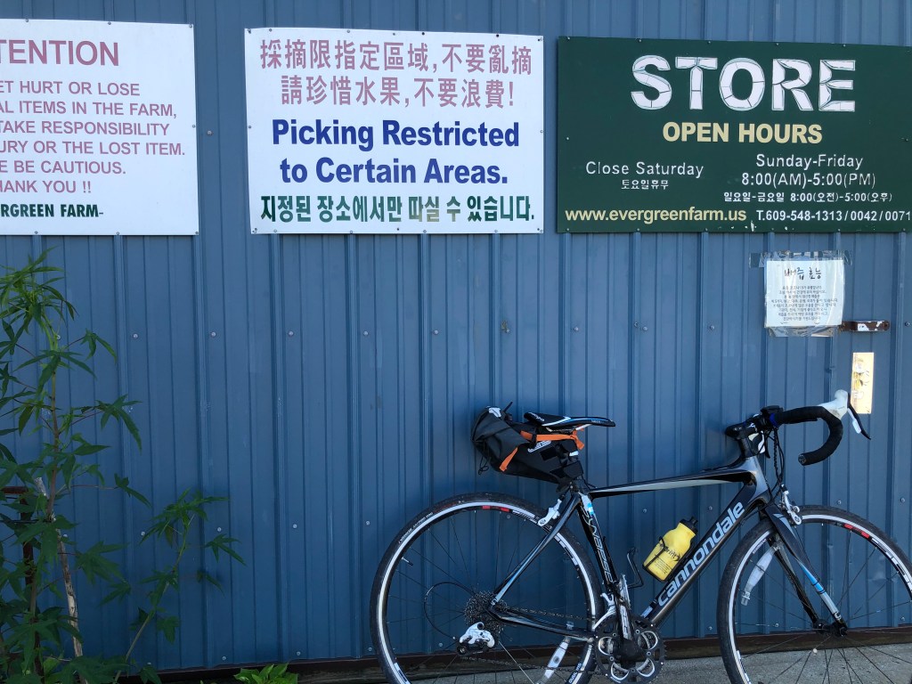 We settled on Evergreen Farm in Hamilton. A neighbor had suggested it in the spring as a possible place to buy shishito pepper seedlings. We never made it then, but we wanted a flat ride today. Just under 30 miles sounded perfect given the heat.