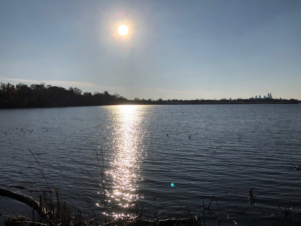 We stuck to the road, passing the turnoff for the Pennsauken Transit Center (trains to Atlantic City and Philadelphia as well as the RiverLine between Camden and Trenton). We turned onto Cove Road, which leads to a boardwalk that takes you to a platform with a view of the Philadelphia skyline in the distance. This quiet spot is a favorite of the ride leader, who thinks it would make a great bike-for-yoga destination. Also on his wish list is a ride to nearby Petty Island, once used by industry and now entirely under a conservation easement, still with limited public access.