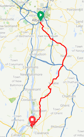 The Albany-Hudson Electric Trail is 36 miles long, and 85% is off-road. A lot is paved, though in Columbia County there was lots of stone dust. It has the usual complications of bridges and even needing to cross under I-90 a couple of times.