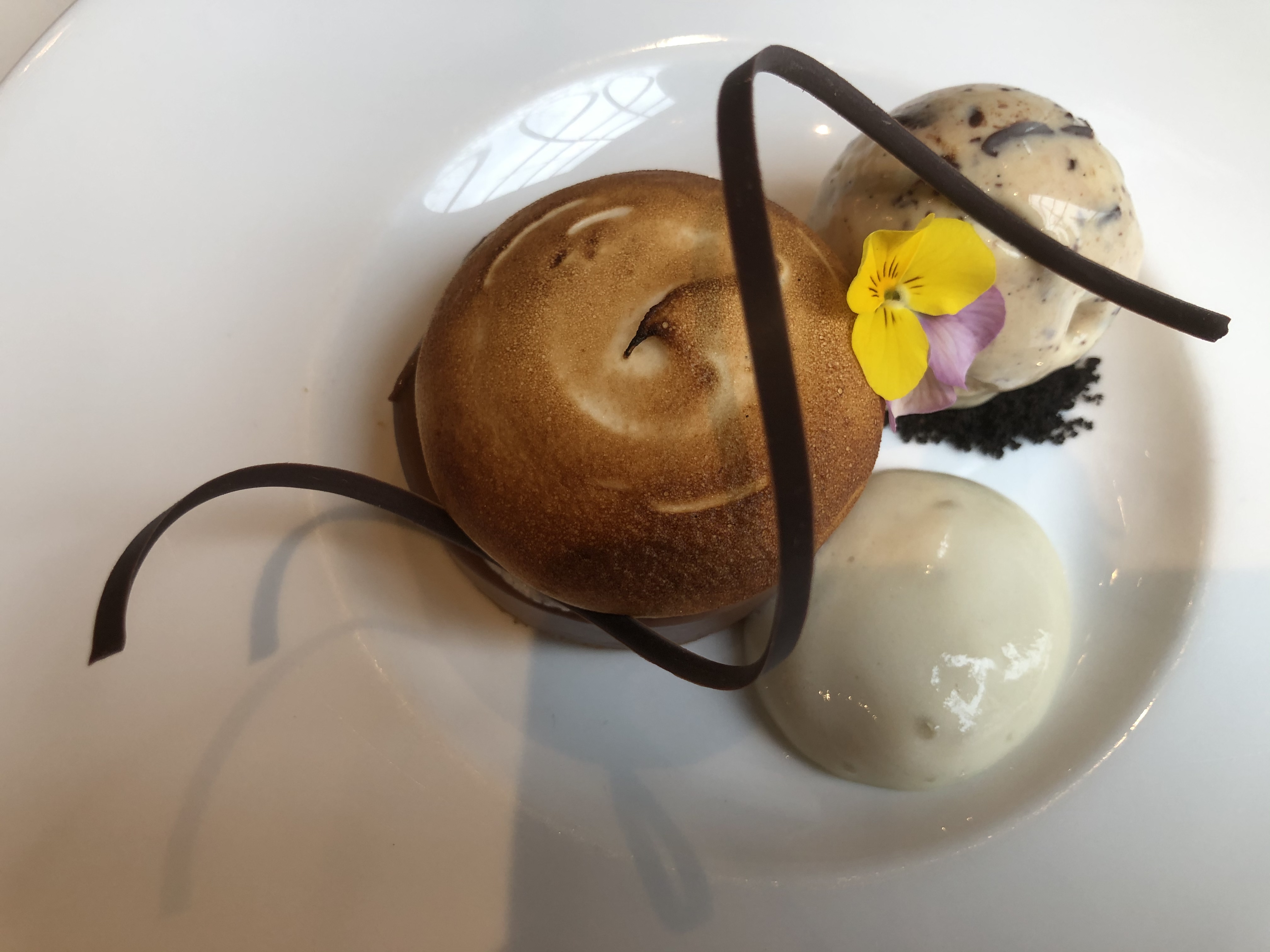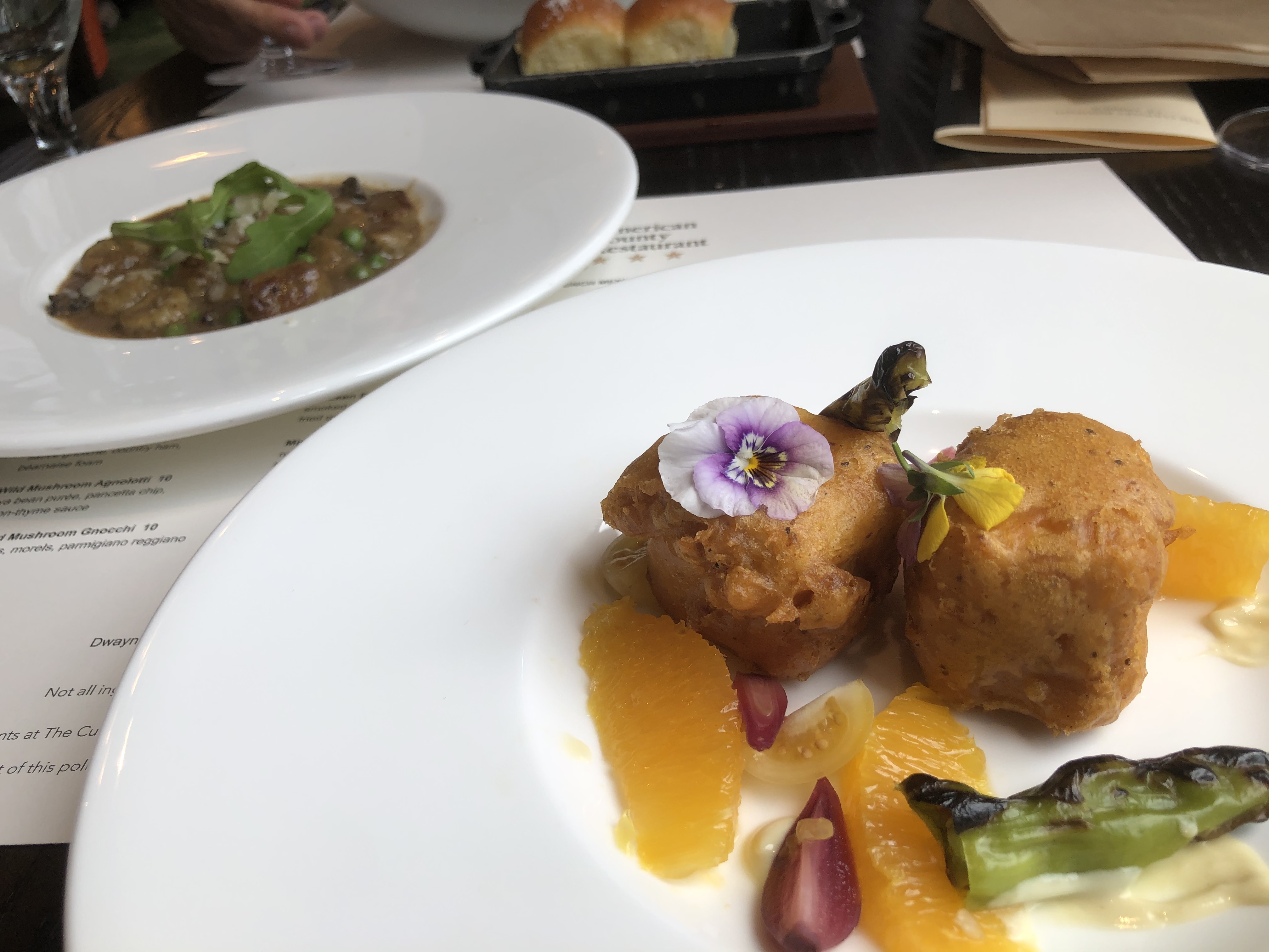 Finally, some photos from our lunch. The sautéed mushroom gnocchi appetizer in the upper left corner was a hit, but the beautifully plated crispy tofu didn’t turn me into a tofu fan. This s’mores chocolate cream cake with banana foam and ice cream, though, was spectacular. Order it if it’s on the menu.