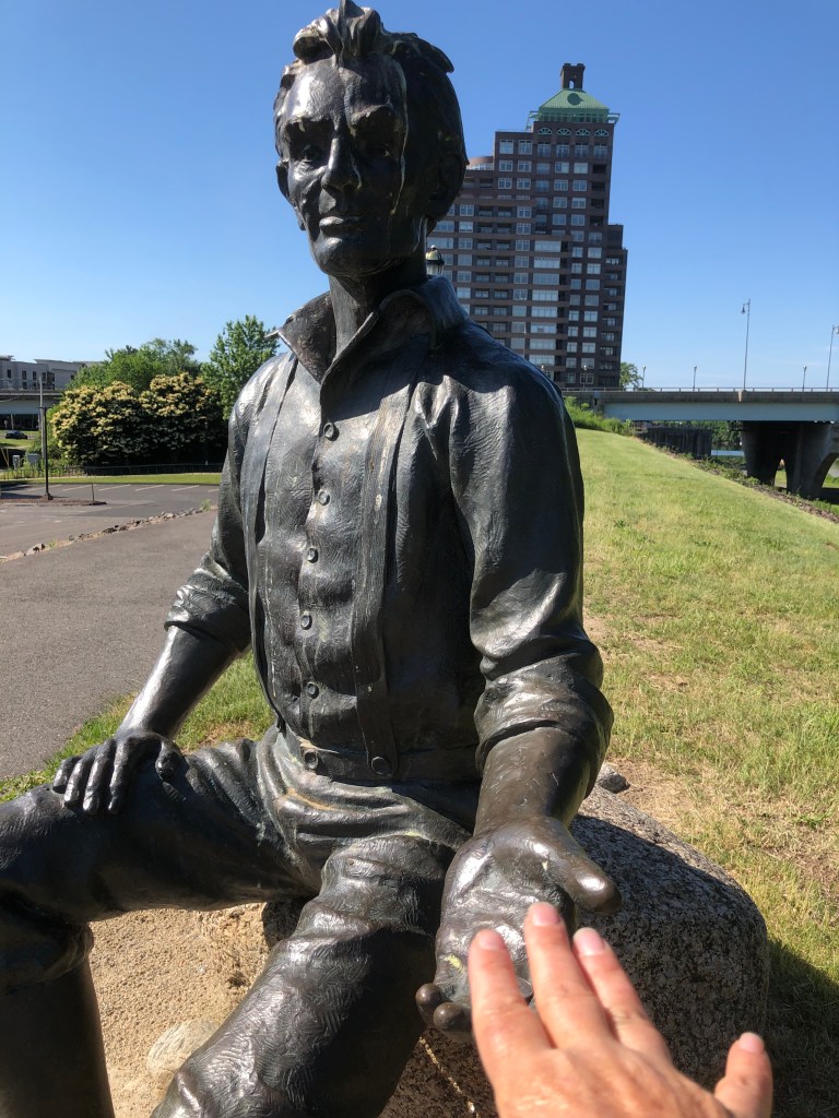 Here’s an unexpected presidential sighting, on the East Hartford side of the Connecticut River. It’s part of the Lincoln Financial Sculpture Walk that honors Honest Abe. This one depicts Abe the loquacious postmaster. Had I realized there were 16 — for our 16th president — I’d have found them all!