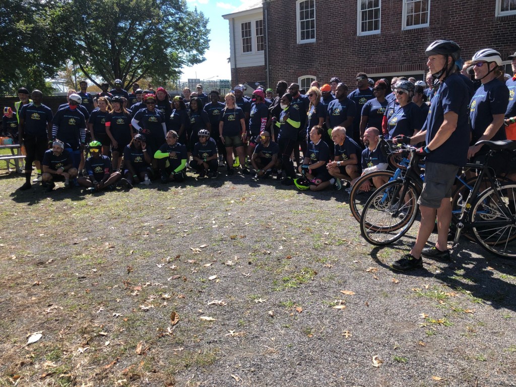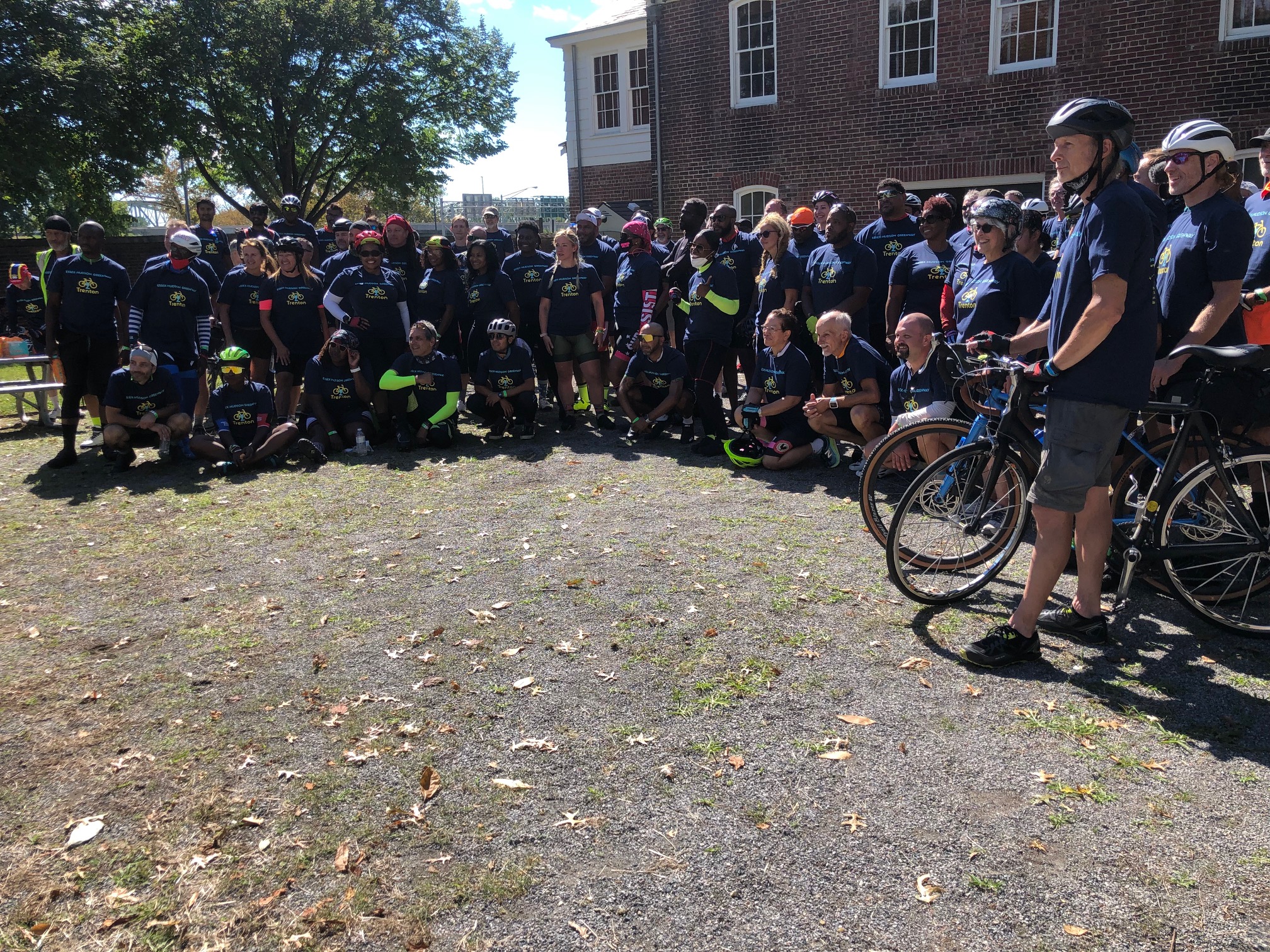 We gathered at the William Trent House before biking the final mile to the Statehouse, all dressed identically in our new T-shirts.