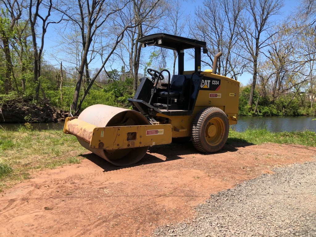 Our wet tires picked up lots of grit and stonedust as we resumed pedaling; I could see it spitting off my front tires and kept hoping it wouldn’t gunk up the gap between my frame and rear brake calipers. Once the tire was too dry (or too covered?) to pick up more, we thought all was good. Nope. We soon hit large stones put down by a contractor. Were these to be crushed into the ground with the roller we soon passed? And help crushed stone dust stay put? Hopefully it’s not permanent, because that was a slow and jarring 2 miles on my road bike (with 28 mm tires to better handle trails like this).