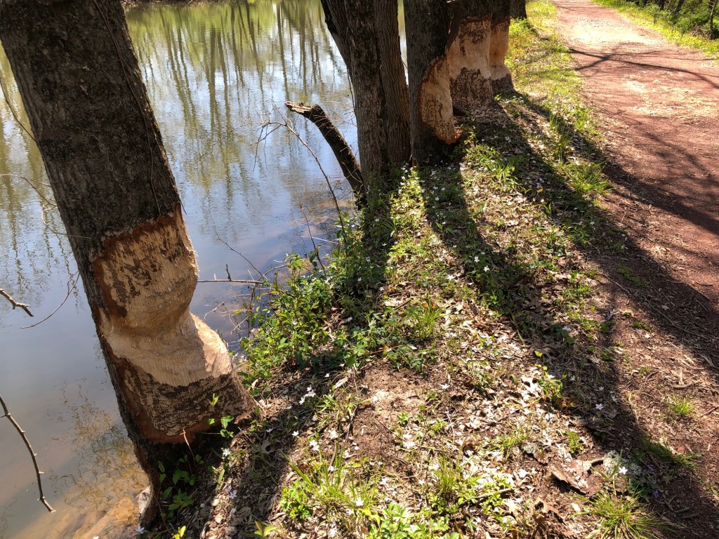 But wait — what about these trees? That’s a new sight. What’s gnawing on them? Because that’s not damage from someone who’s bad with an ax. My bet is beavers. I’ll have to start looking for signs of a lodge or a dam the next time I’m on the D&R canal towpath closer to Griggstown. And once the trees go, what does it mean for soil erosion?