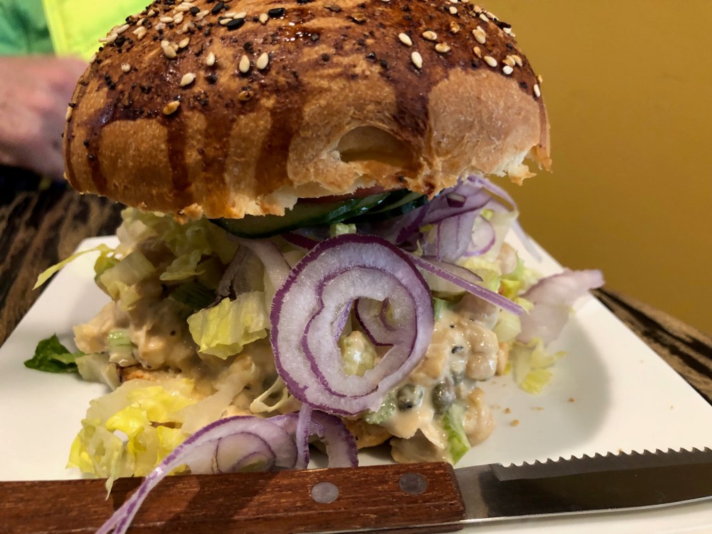 The third person in our group opted for this impressively stacked lemon chickpea tuna sandwich on a house-made bun.