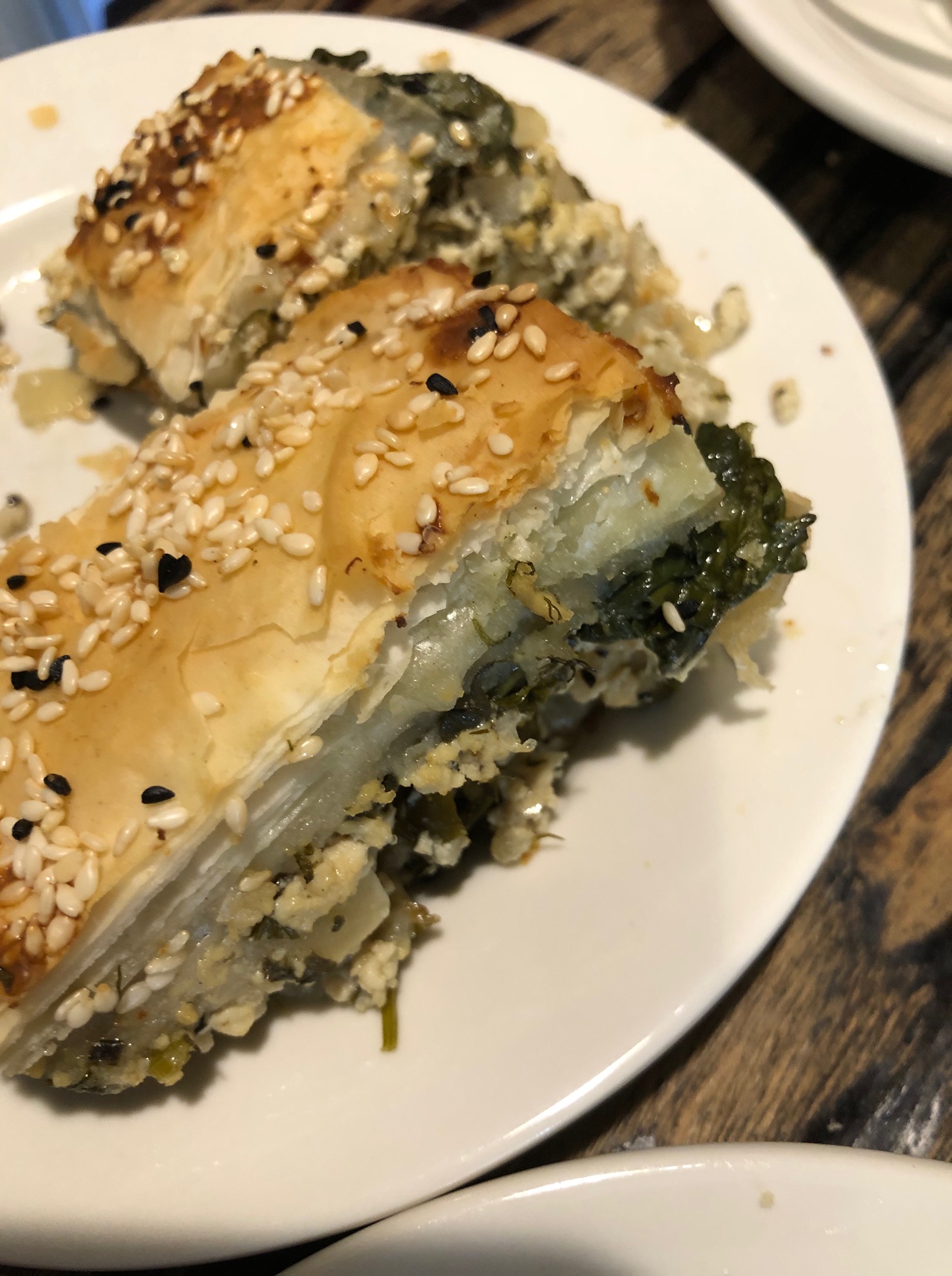 I admit that the oversized chocolate hazelnut baklava, more like a generously filled slice of pie and then with a layer of chocolate chips visible below the top crust, was oh so enticing. See the photo at the very top and admit that it’s what you’d pick too. But did I really want to limit myself to just one thing? In the end, two of us shared the spinach and cheese borek plus the orange blossom semolina cake. Thumbs up on both.