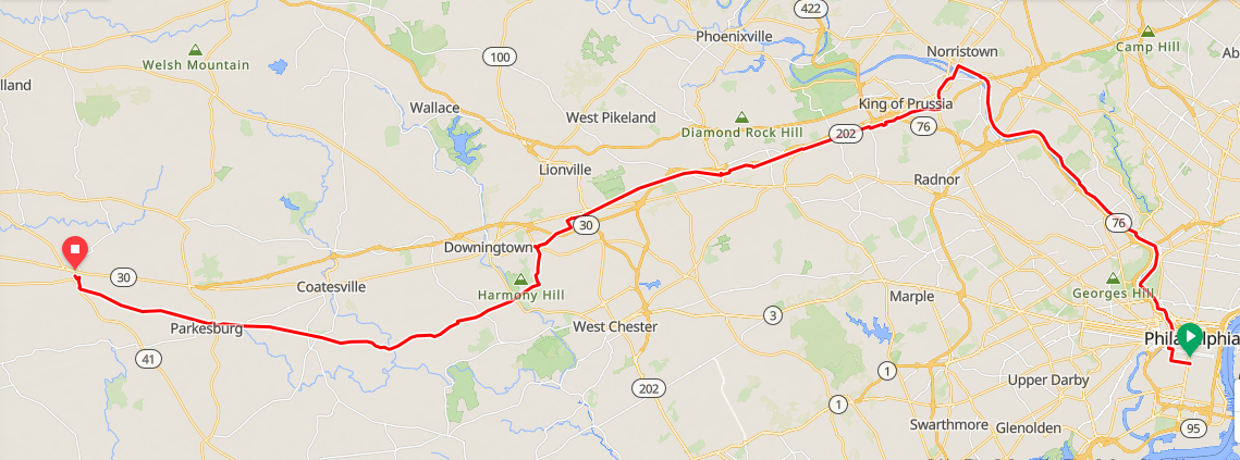 How in the world did we (Komoot? Ride with GPS?) pick this metric century route to Gap, Pa., a small town in Lancaster County?
