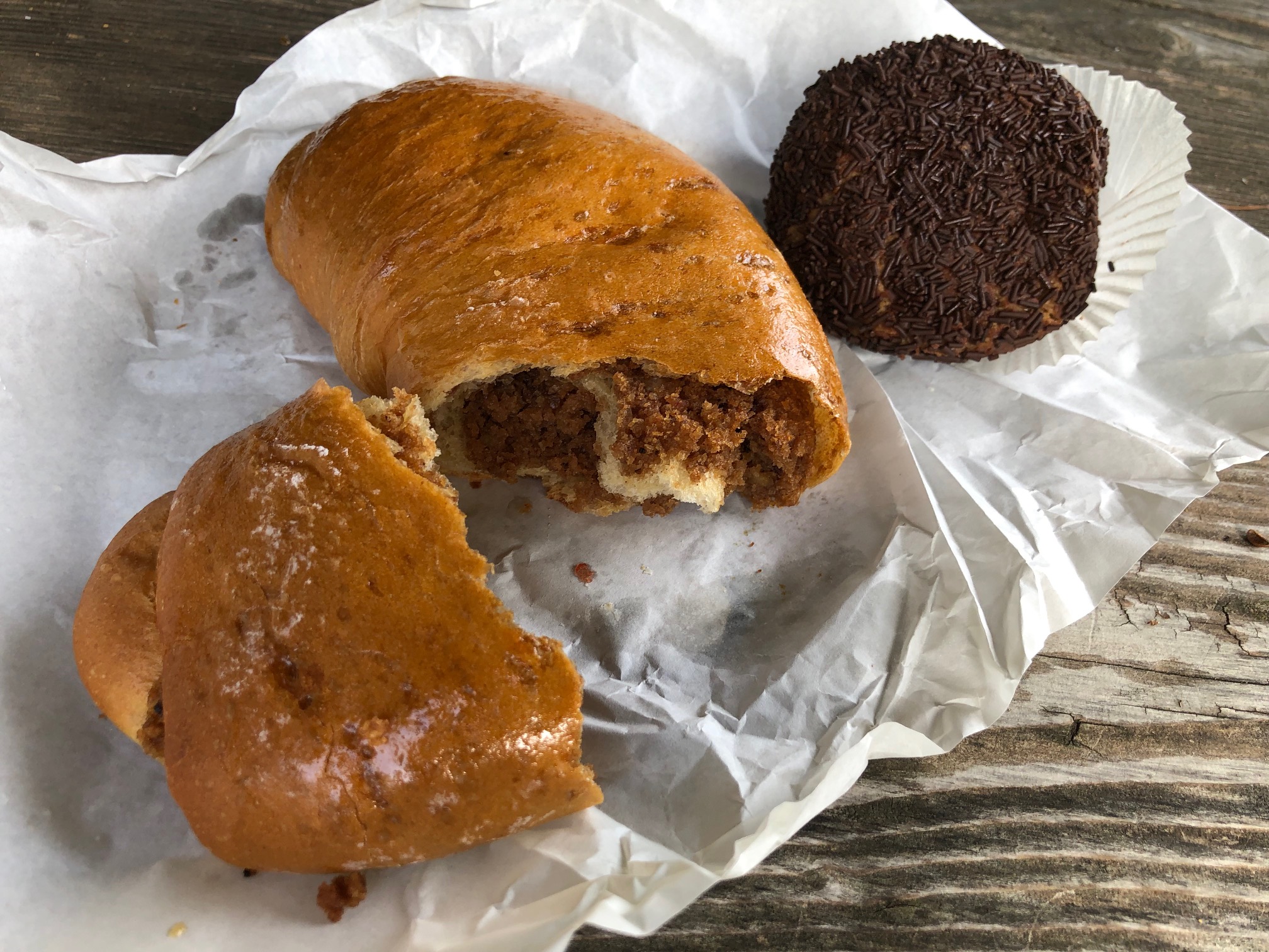 The Brit opted for a nut-filled doughy crescent-shaped pastry. I think I made the better choice.