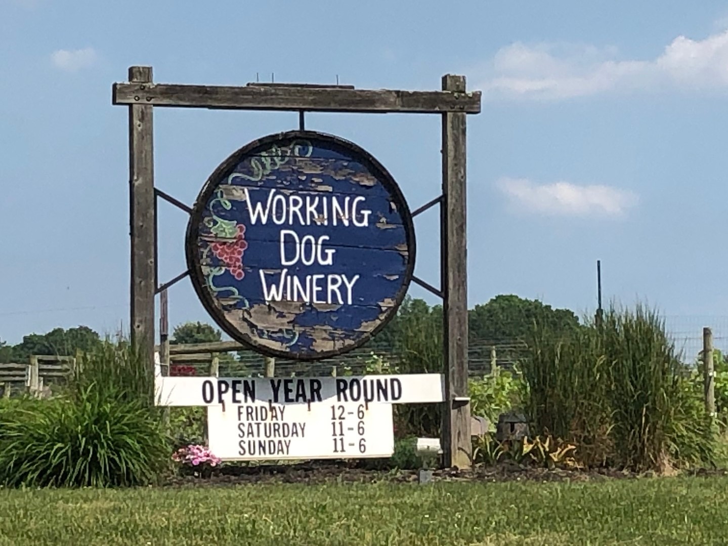 Across U.S. 130 and a couple of “hills” — including the Turnpike overpass. Then left onto Allens Road and shade. A slight right halfway through our ride and we are at Working Dog Winery in East Windsor — or is it Hightstown?