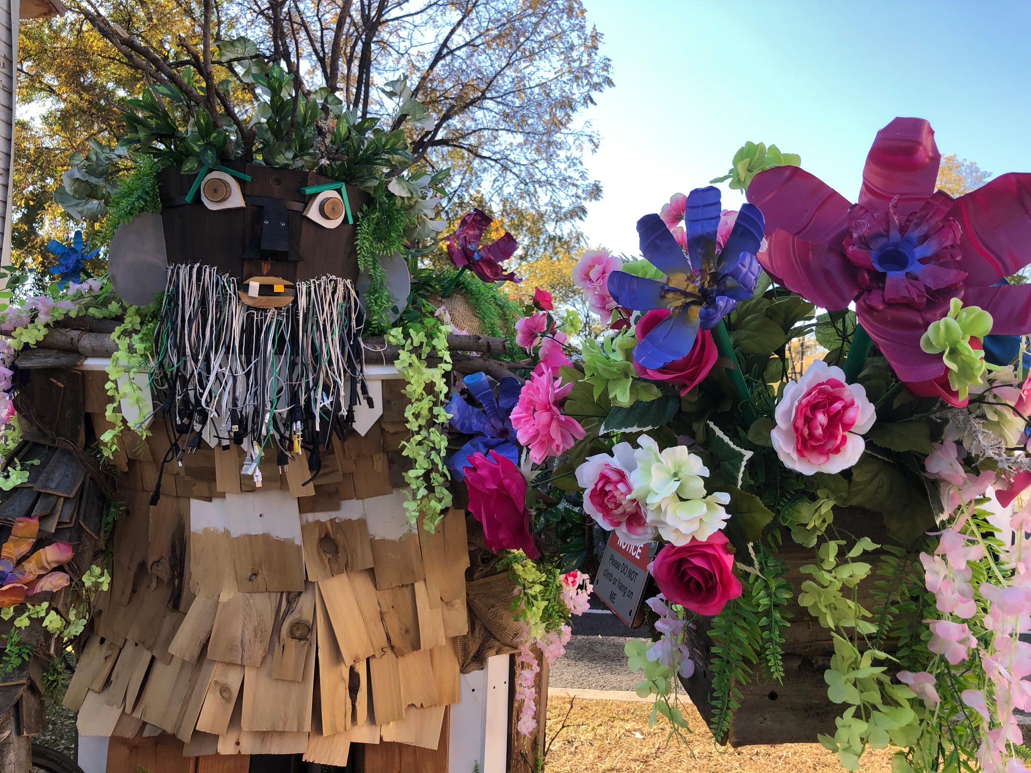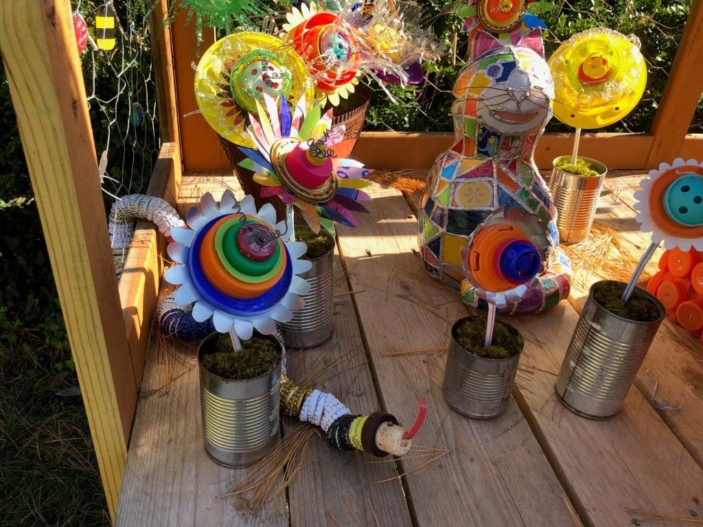 Nearby was Gracie the Gardener. The orange dress? Made of Gatorade bottle caps. Again, the extras! Can you spot the snake?