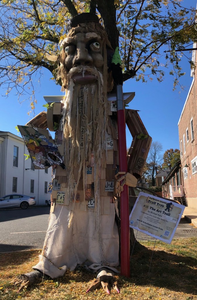 Another sunny, unseasonably warm day, so a good time to hunt for more of those trolls in Burlington County. This is a cool art project using recycled materials that was inspired by Danish artist Thomas Danbo’s Big Rusty, who moved into the county several years ago.