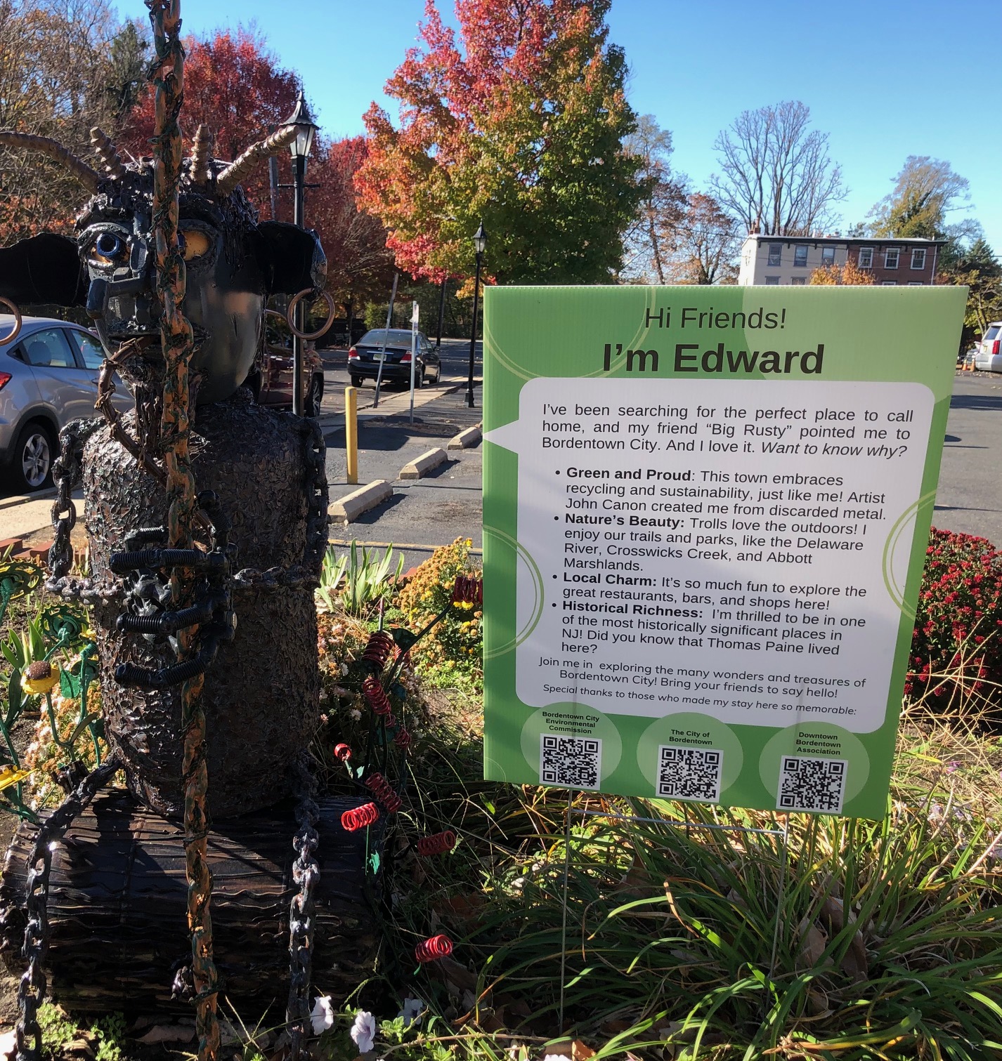 First up: this guy in Bordentown City, on Farnsworth Avenue, the city’s main drag, and just a couple of blocks from the RiverLine station (and free parking for those who drive). I like how Bordentown officials and business leaders used Edward as a way to promote the city.
