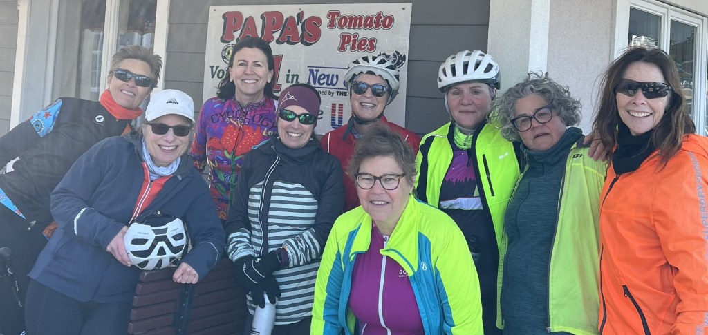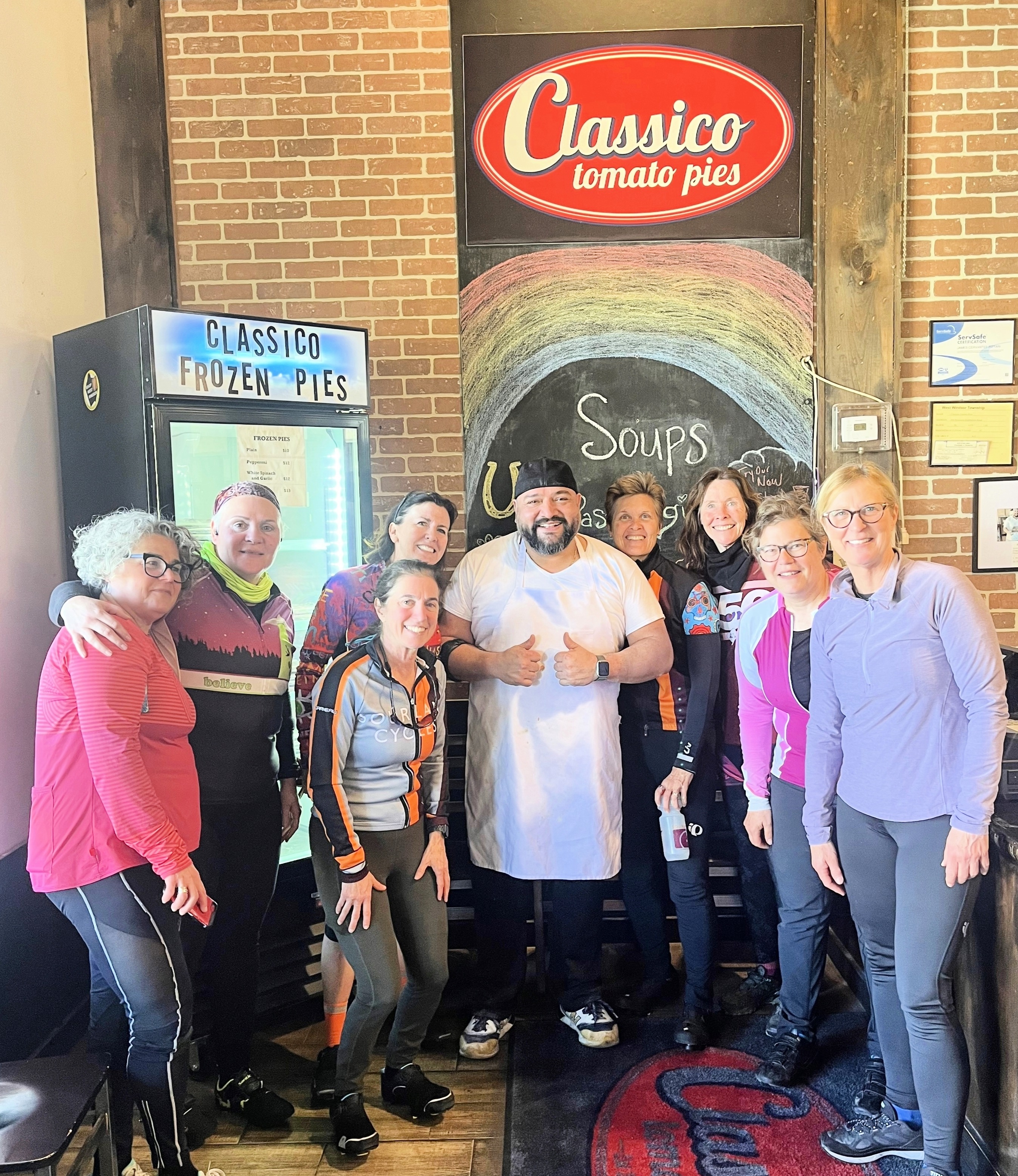 All good. One 16-inch pie demolished, we got back on our bikes for another 10 miles.