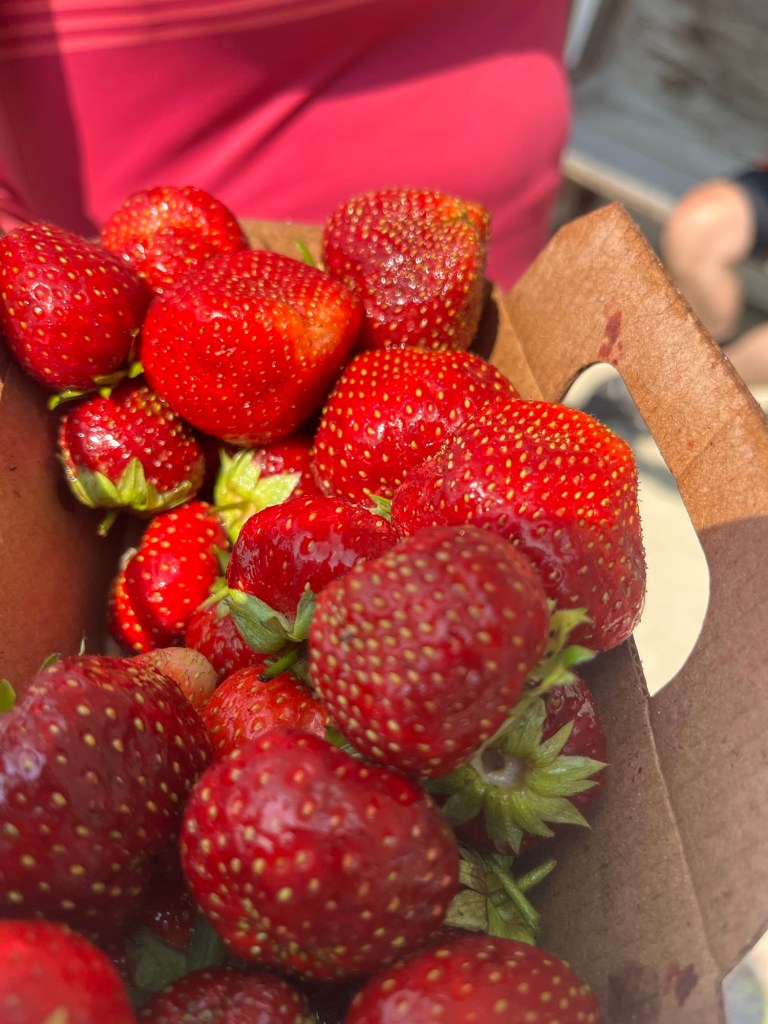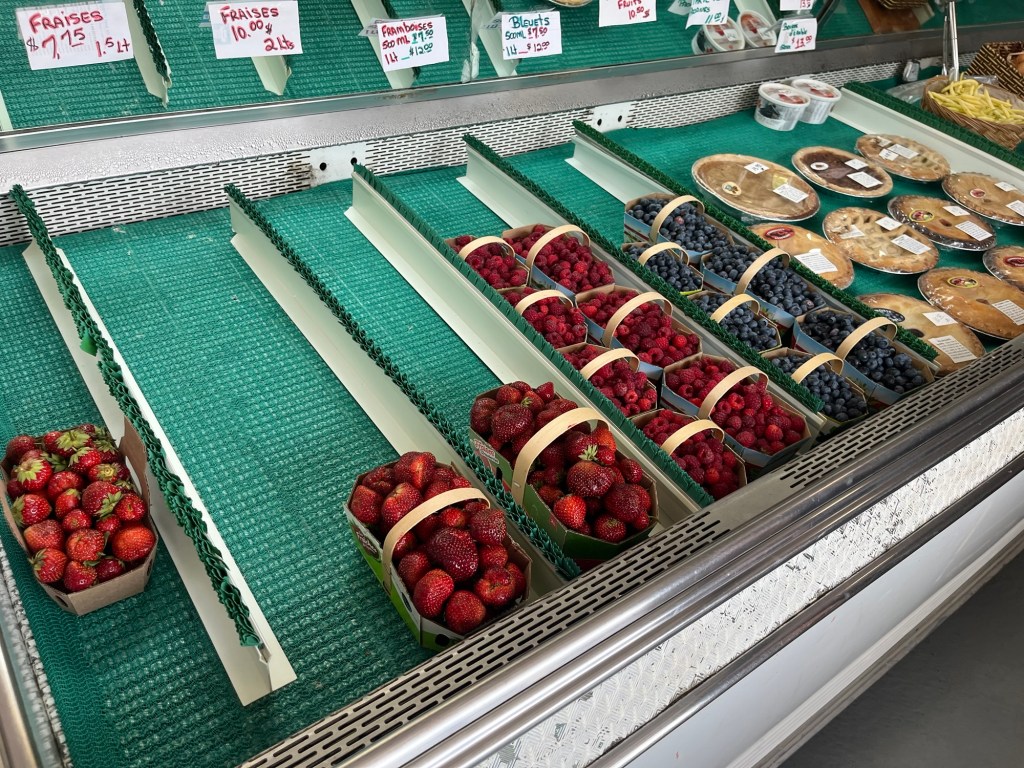 We found plenty of reasons to stop: a fruit stand with freshly picked bright red strawberries full of flavor, a laitierie, or ice cream stand, the view.