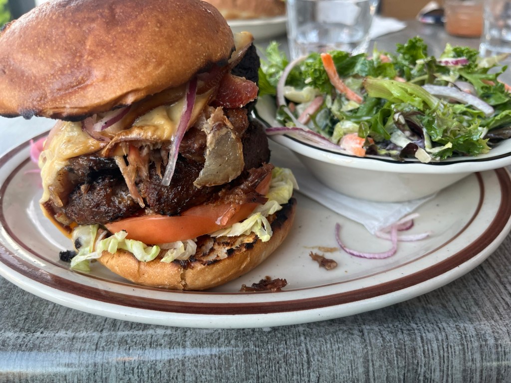 Which means I earned a messy burger with bbq pork shoulder on top for dinner at a delish restaurant around the corner from our hotel: