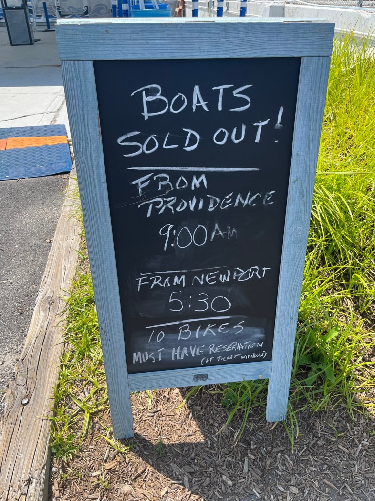 Only 10 bikes allowed. You now have to reserve your bike spot … we didn’t know that last part so our bigger plan of biking from Barrington to the ferry in Bristol, going to Newport and biking along Ocean Drive near the OTT Gilded Age mansions, taking the ferry to Providence and biking back to Barrington quickly fell apart.