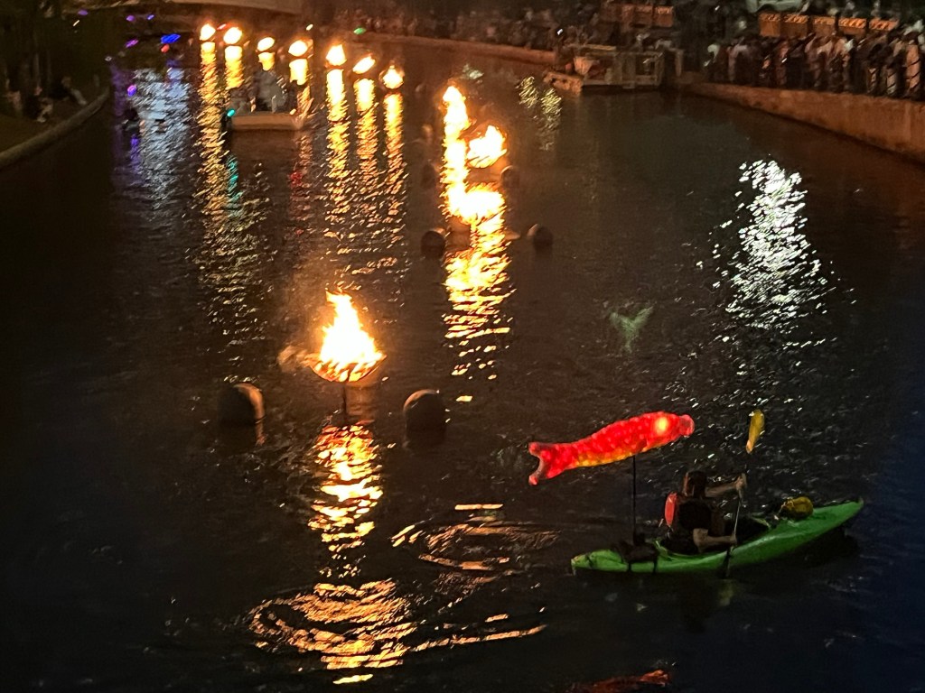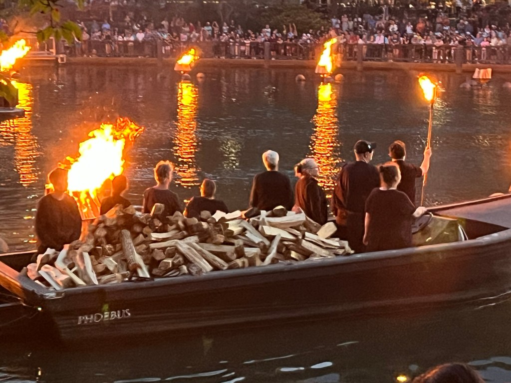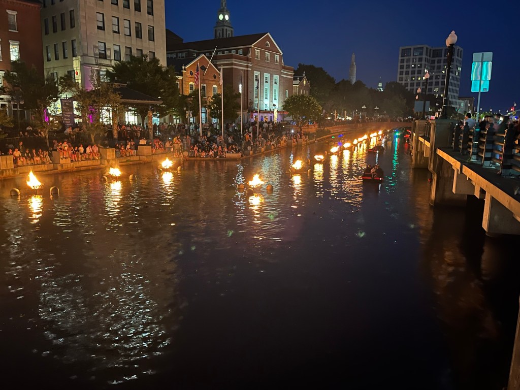In the evening we drove into Providence, caught up briefly with some of friends of mine, and then headed to WaterFire, this wild event where fire pits on the river are filled with wood, set alight and then refilled to keep feeding the flames. Thousands of people line the river, almost more like a canal, to gaze at the flames for free. And kayakers paddle all around (that part isn’t free for them).
