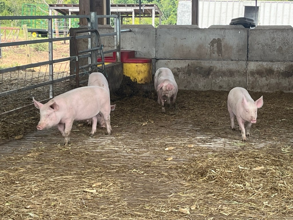 The farm-to-glass vibe and the outdoor seating reminds me of Screamin’ Hill in Cream Ridge (that ride here), though this one is much more kid-friendly with a play area with a farm feel. Kids tromp on hay bales, the slide is attached to a round bale, and there’s a “sandbox” filled with dried kernels of corn. And if you want to see pigs and cows….