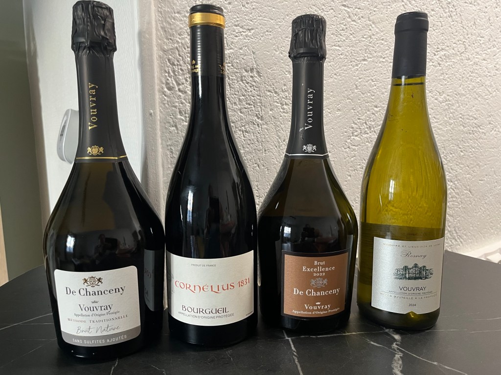 It’s tough to carry much when you are traveling by bike, but we somehow headed back to Tours with four bottles wrapped in bike clothes.