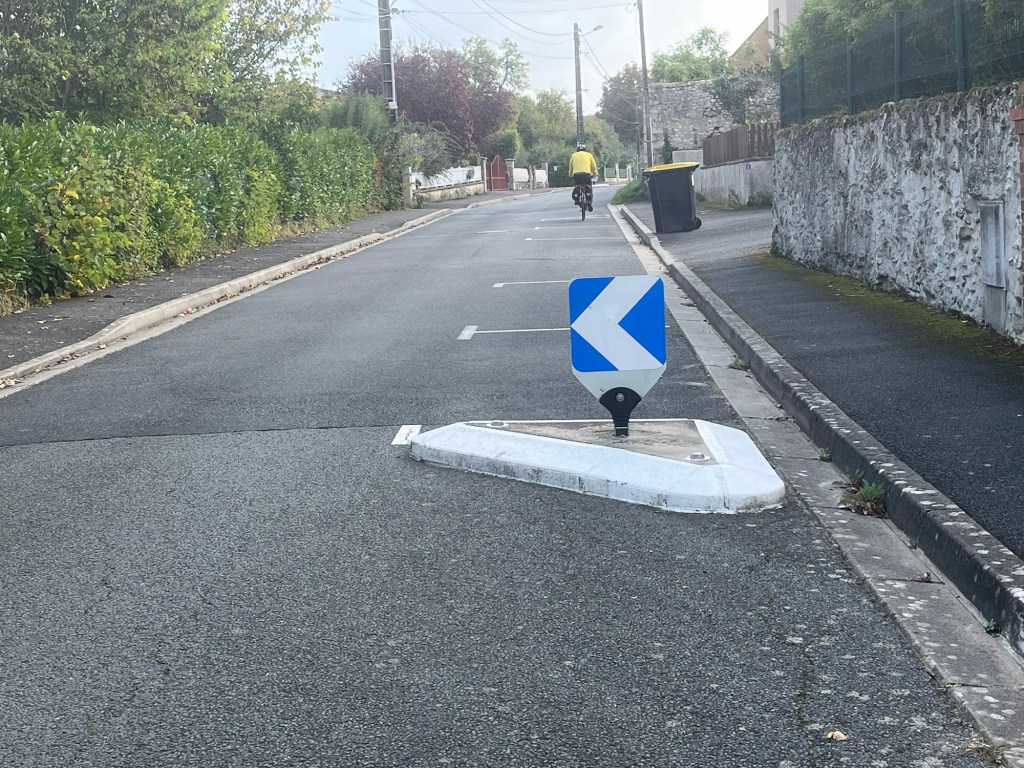 I can hear all those people sputtering “but, but … you can’t do that! I was taught to only ride in the same direction as traffic!” And I’m not saying it works everywhere. But on low-speed roads, even in a city of 135,000 like Tours, a contraflow bike lane does. (And yes, there generally was a demarcated lane for those cyclists.)
