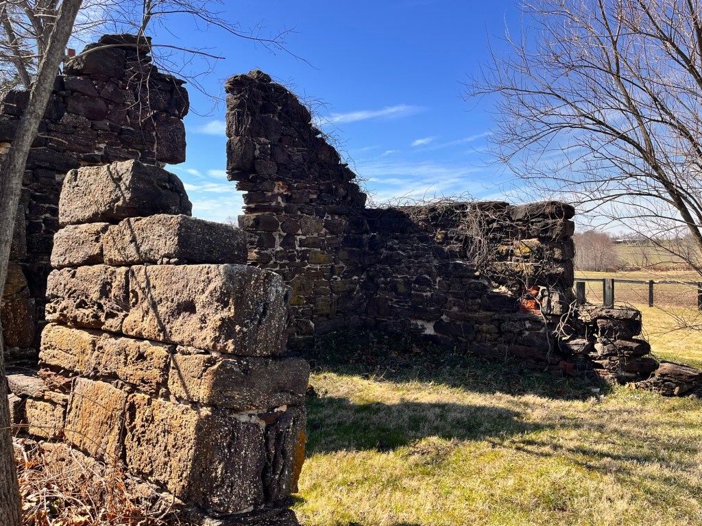 I heard about the Lincoln blacksmith shop and decided to make it the destination of a bike ride from West Windsor. The ruin is at the corner of Burlington Path Road and Harvey Road (between the corner and a house on Burlington Path).