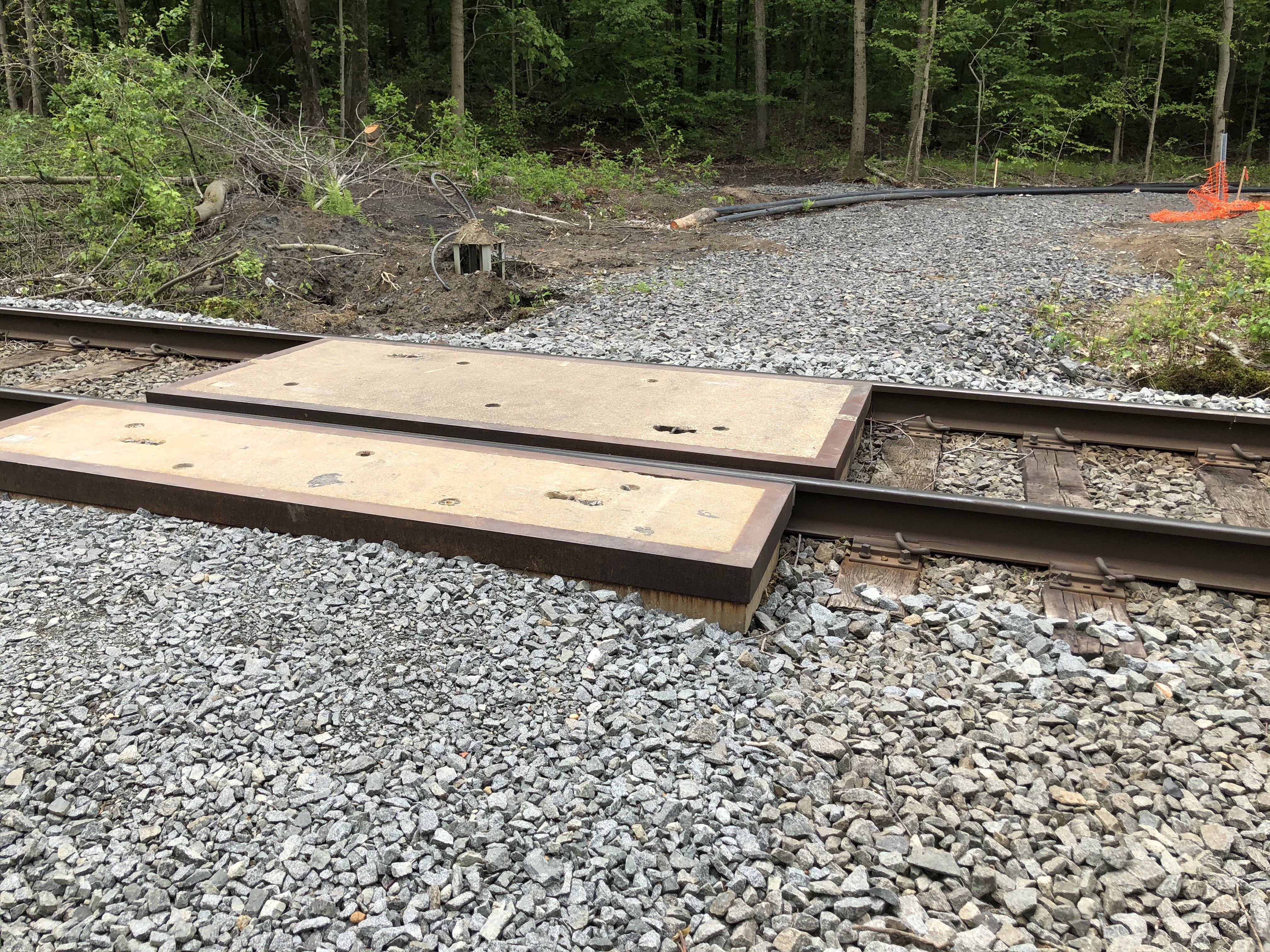 New Jersey Transit isn’t quite ready for this trail to cross the RiverLine tracks. It has blocked off the next section of already-paved trail with a fence, and we weren’t ready to look for the goat paths to get around it.