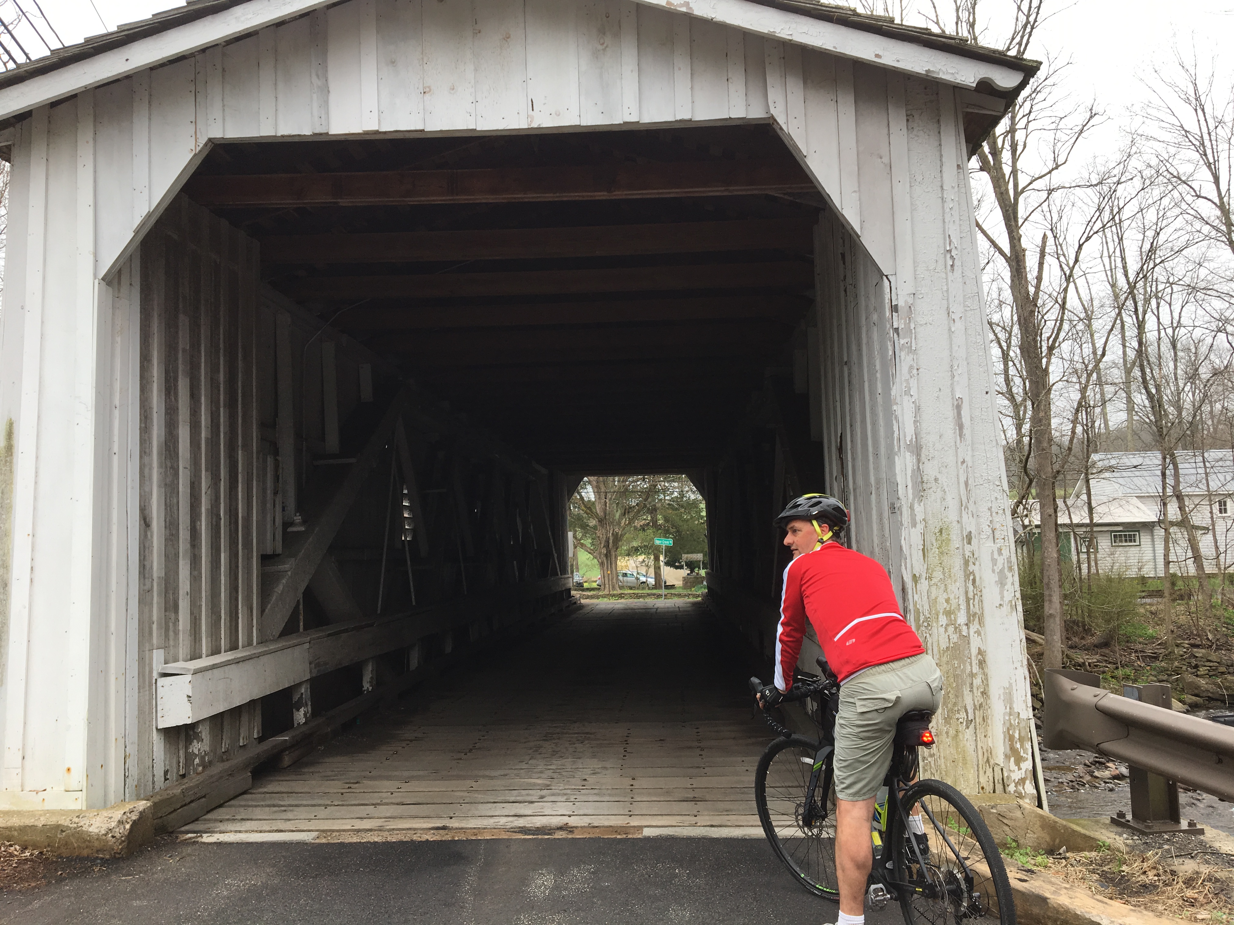 Early on, we crossed New Jersey’s only covered bridge, the one-lane Green Sergeant with wooden planks for the floor as well as wooden sides and top. (Traffic going the other way takes a flat modern bridge.)