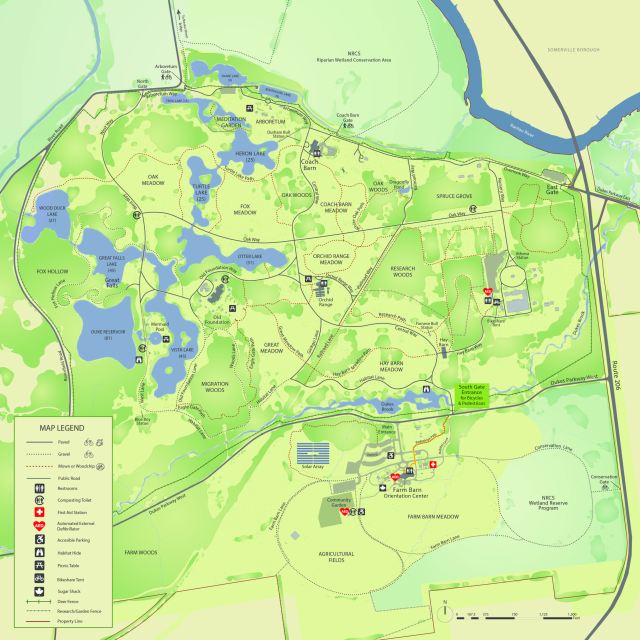 Duke Farms has 7 miles of paved trails plus additional gravel miles open to bikes.