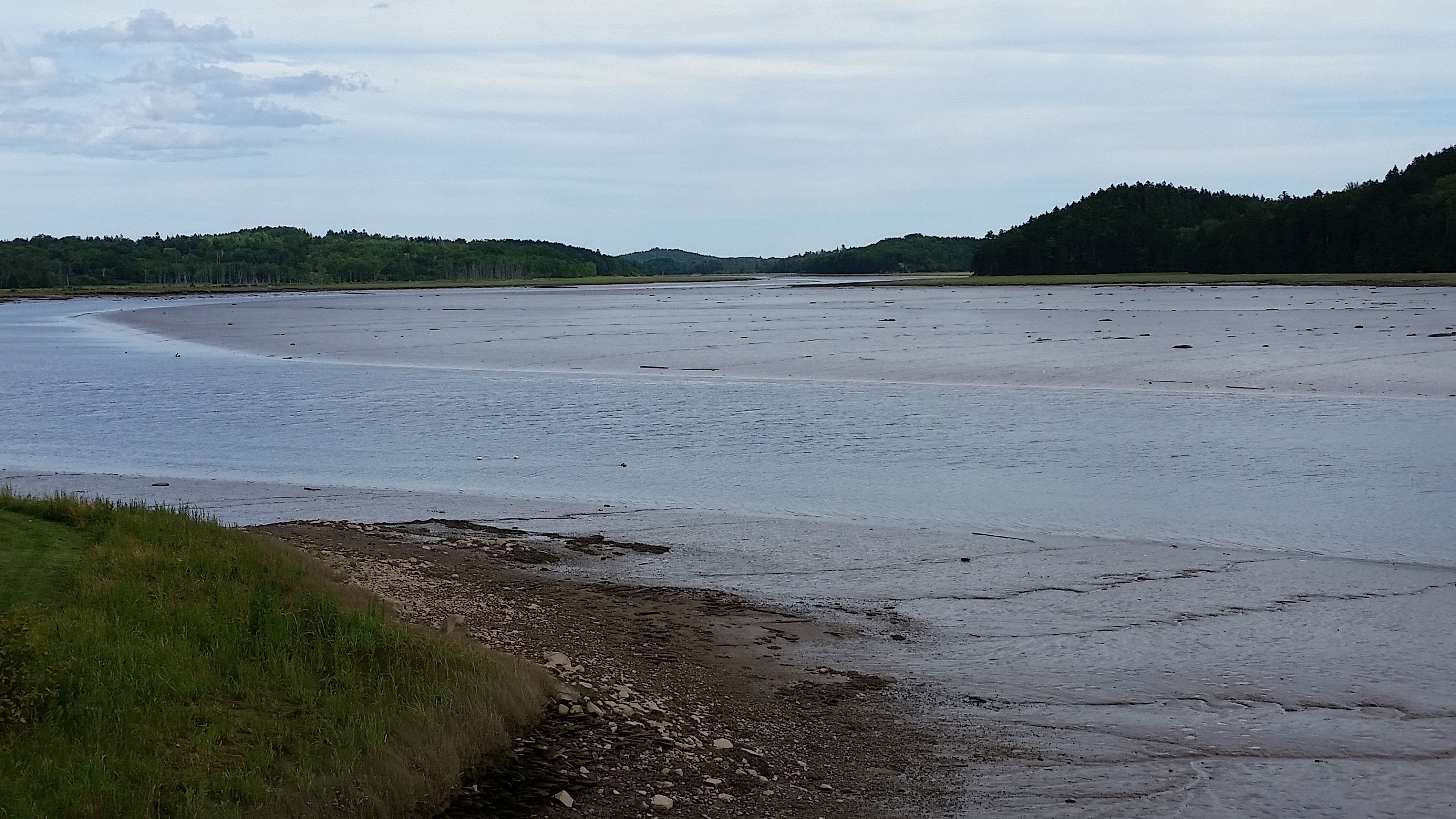 We biked 68 miles today — it should be our longest day of the week — and climbed an estimated 3,212 feet, also the most of the week. We’re now at the gateway to Acadia National Park. The closest we’ll get, though, is this view from the road. I think Cadillac Mountain is the one on the right.