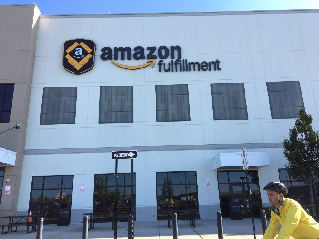 We picked an unusual bike-ride destination this time: our nearby Amazon warehouse, er, I mean fulfillment center.