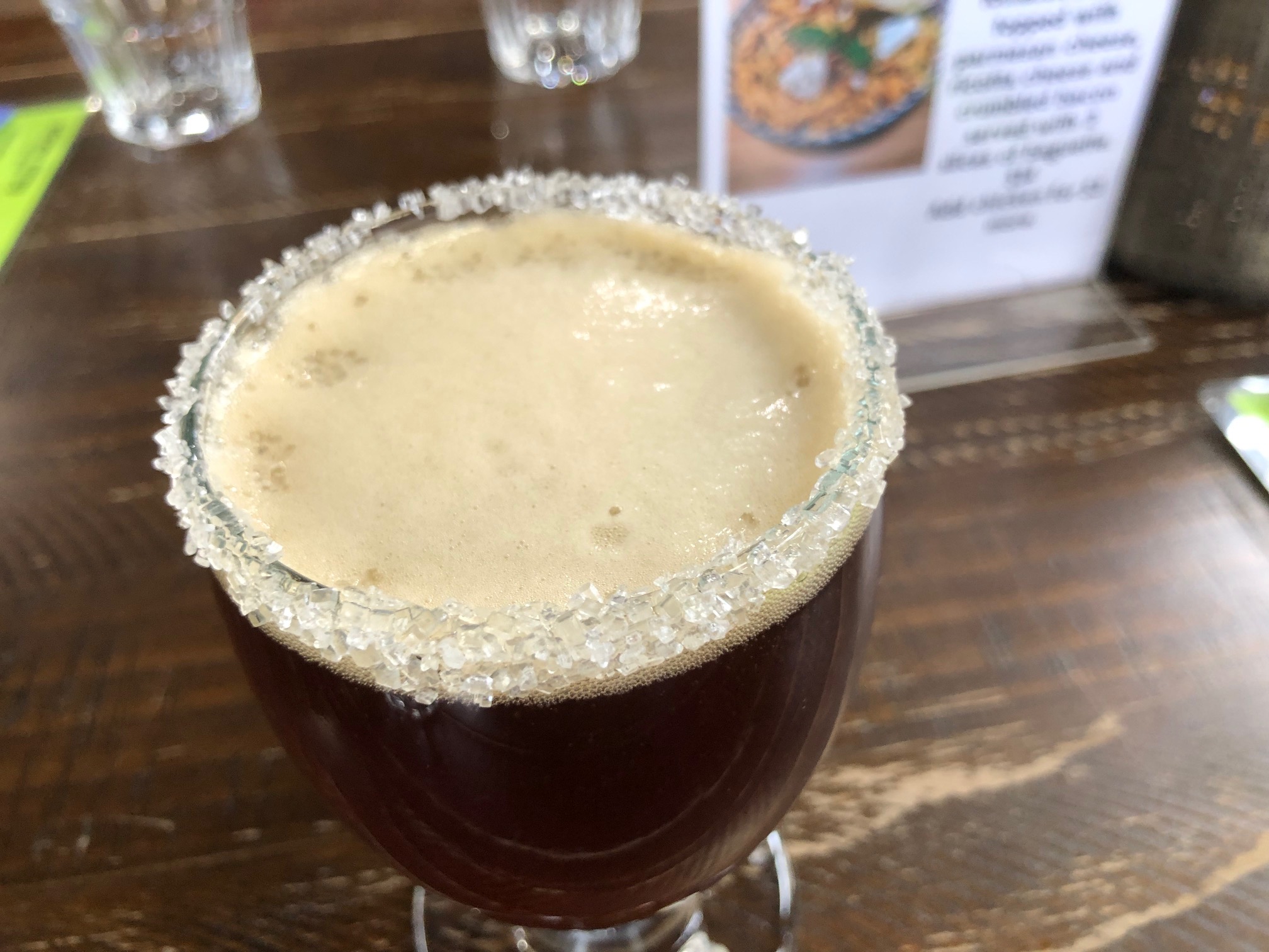 Let me start by saying that for a couple of my friends, anything beyond a Michelob Ultra can qualify as a “weird beer.” So don’t be offended by the term. As for a cherry-red one with coarse white sugar crystals lining the rim — maybe we can all agree that it’s at least unusual?